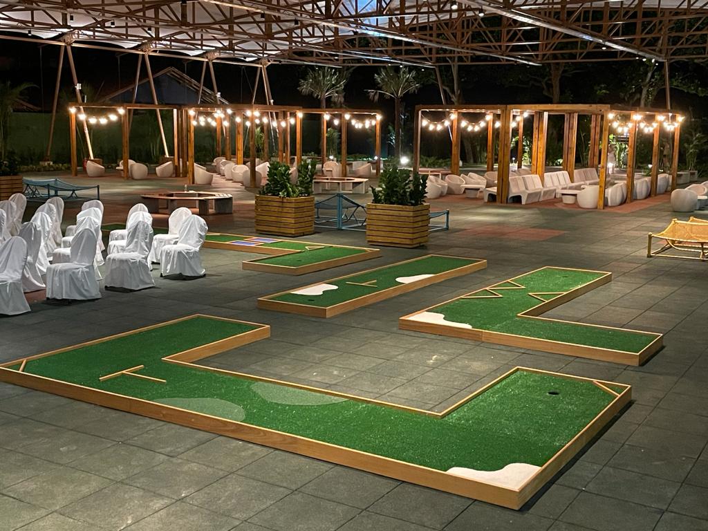 Alugamos pistas de Mini Golfe para diversas ocasiões. Elas podem ser utilizadas como um acessório agregador de público, uma atração ou um entretenimento.